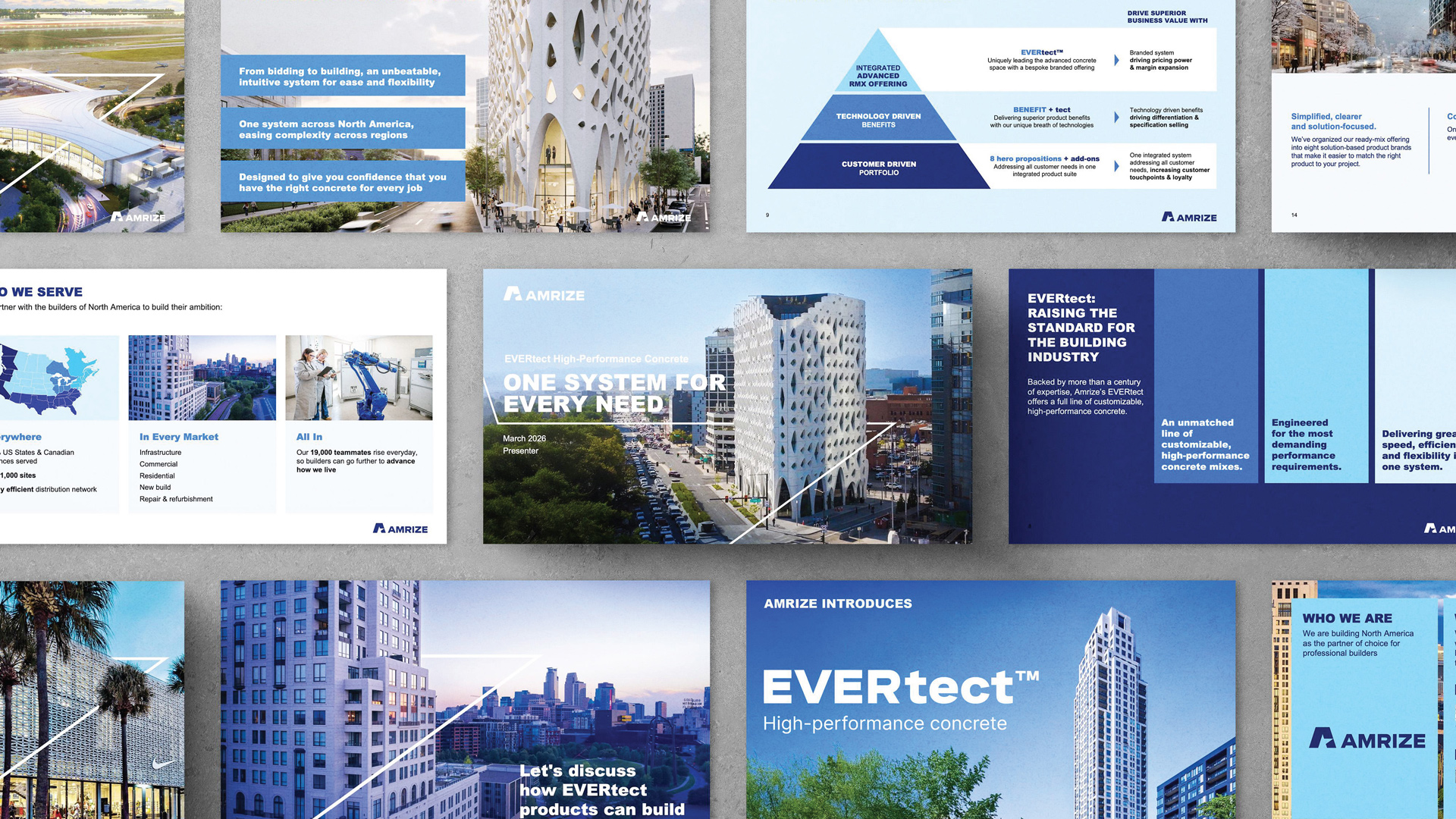 In the world of construction, infrastructure, towers, buildings, and communities, builders need a concrete tailored to their project and structure. The literal foundation for their success, it is imperative builders pick the right concrete for the job at hand. However, the category is competitive, challenging and crowded. There’s no unified, intuitive system that addresses this problem that builders across the country face every day. Amrize, North America’s leading building solutions and service provider, saw the market's issue and the builder’s problem and developed EVERtect™. A high-performance concrete that’s scalable, customizable, and a one-stop solution. Amrize had the innovation, vision, and product, and turned to Starfish to develop the brand’s positioning, go-to-market strategy, design, and communications, including sales enablement toolkits and digital and social content.