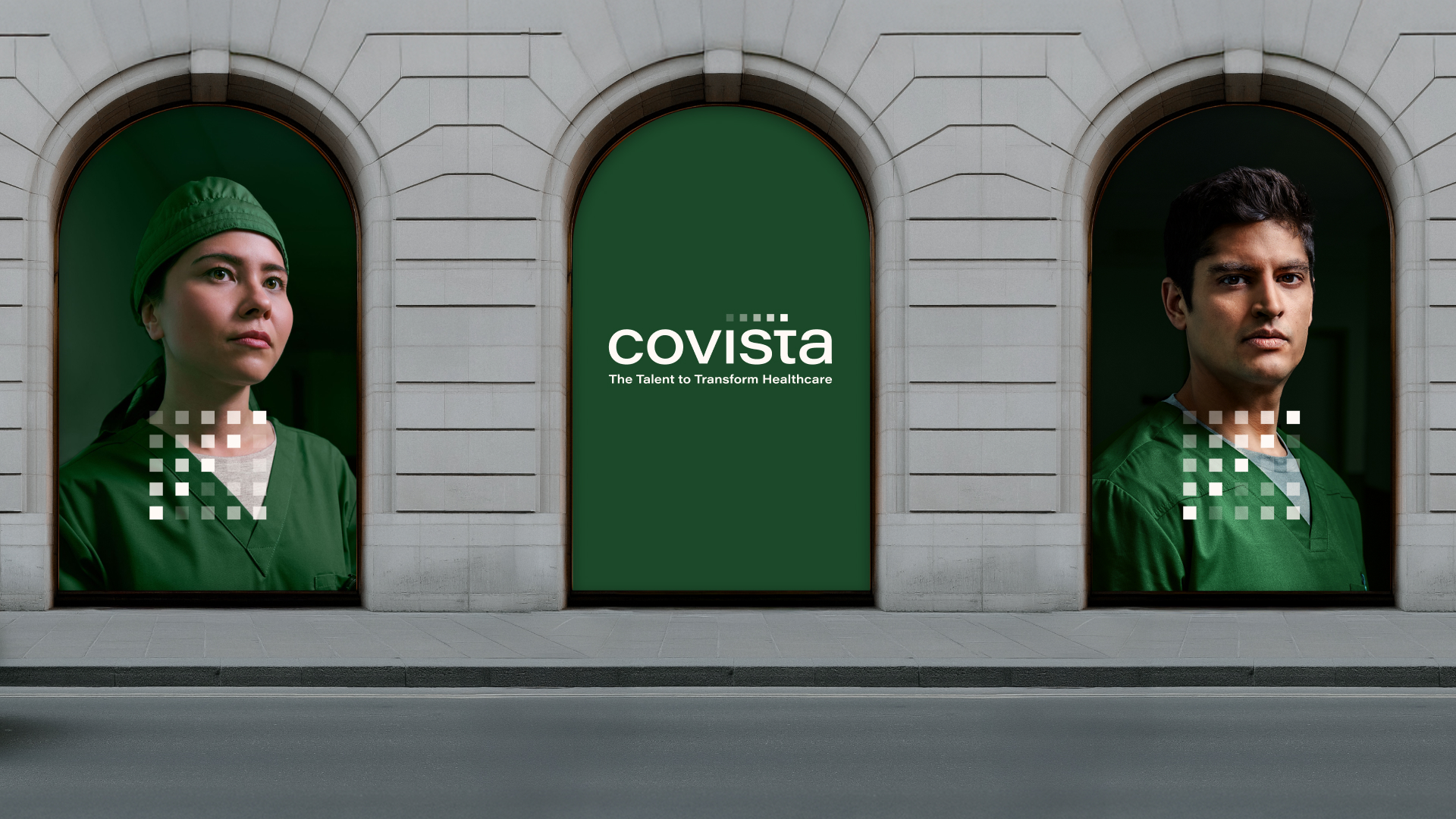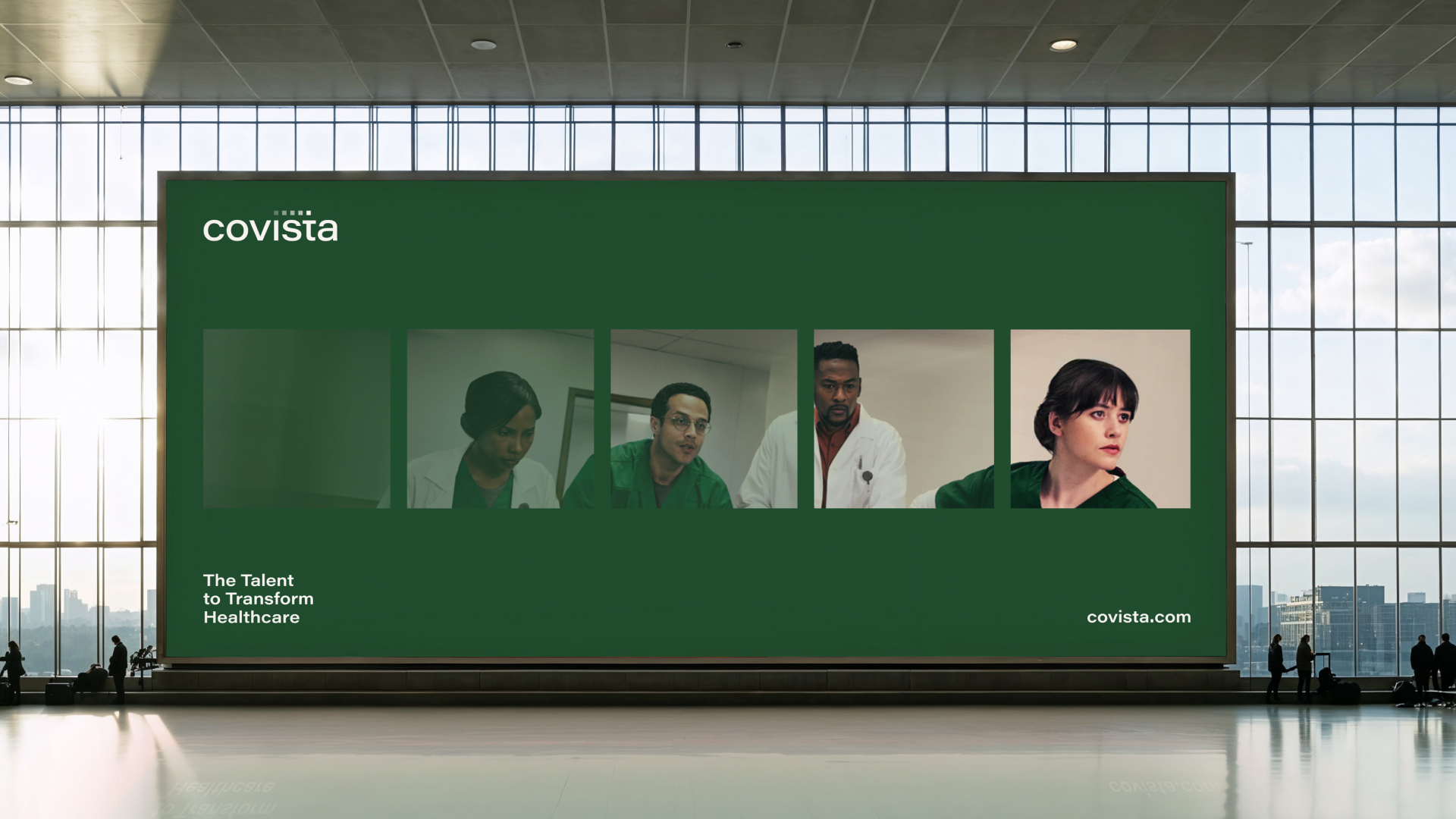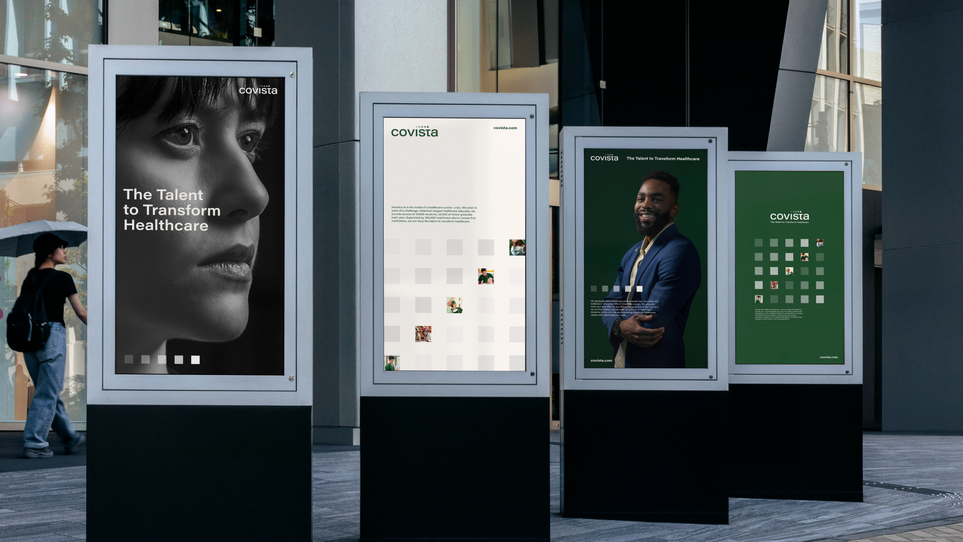First, the name: A critical part of this assignment was to find a name that would demonstrate collective efforts honed by a single vision. We generated hundreds of names, each with an etymology, which are part of a multi-layer categorical construct. Covista: (pronounced co-vis-tuh) blends two “co”, standing for community, collaboration, and partnership, and “vista”, referencing future and vision. Unpacking the brand idea, “The Talent to Transform Healthcare,” Covista provides access, develops talent at scale, and equips individuals to improve lives and communities. In doing so, it transforms the organization from an owner of institutions to a steward of healthcare impact, clarifying its role for employees, partners, policymakers, and investors alike