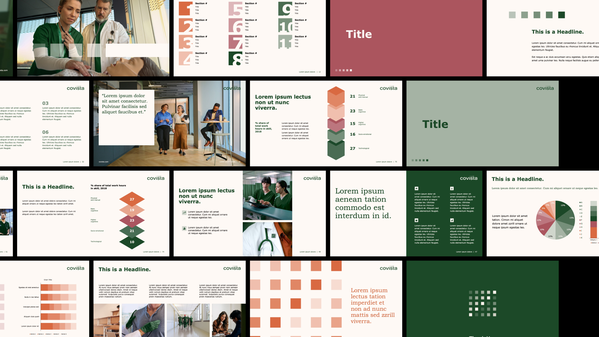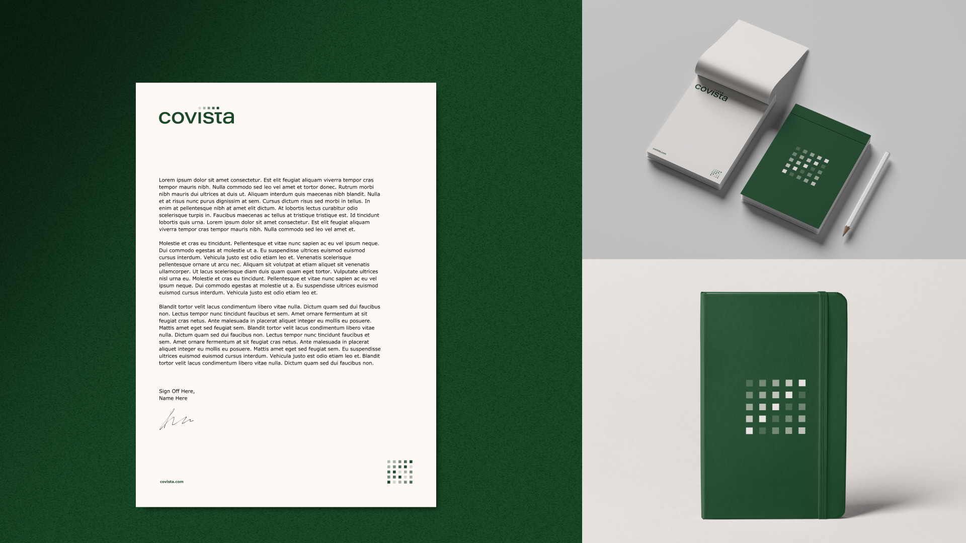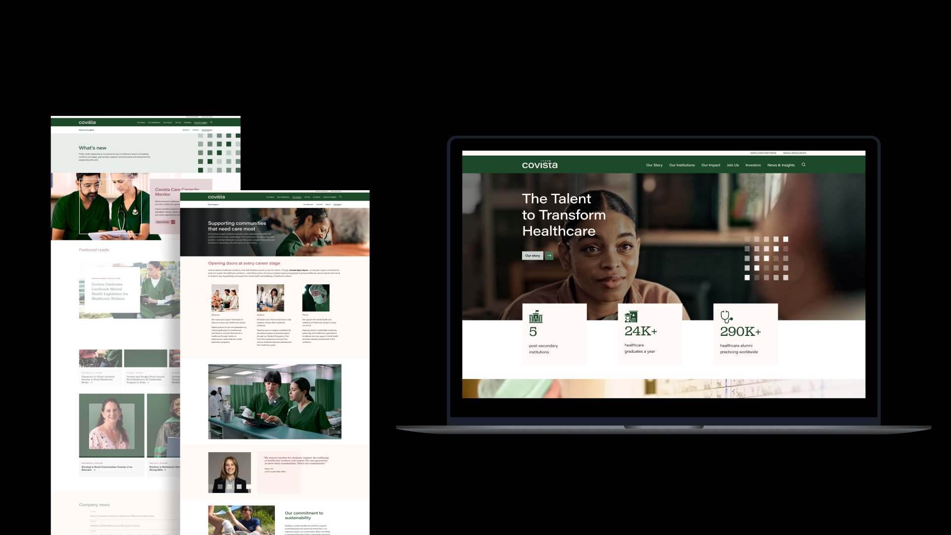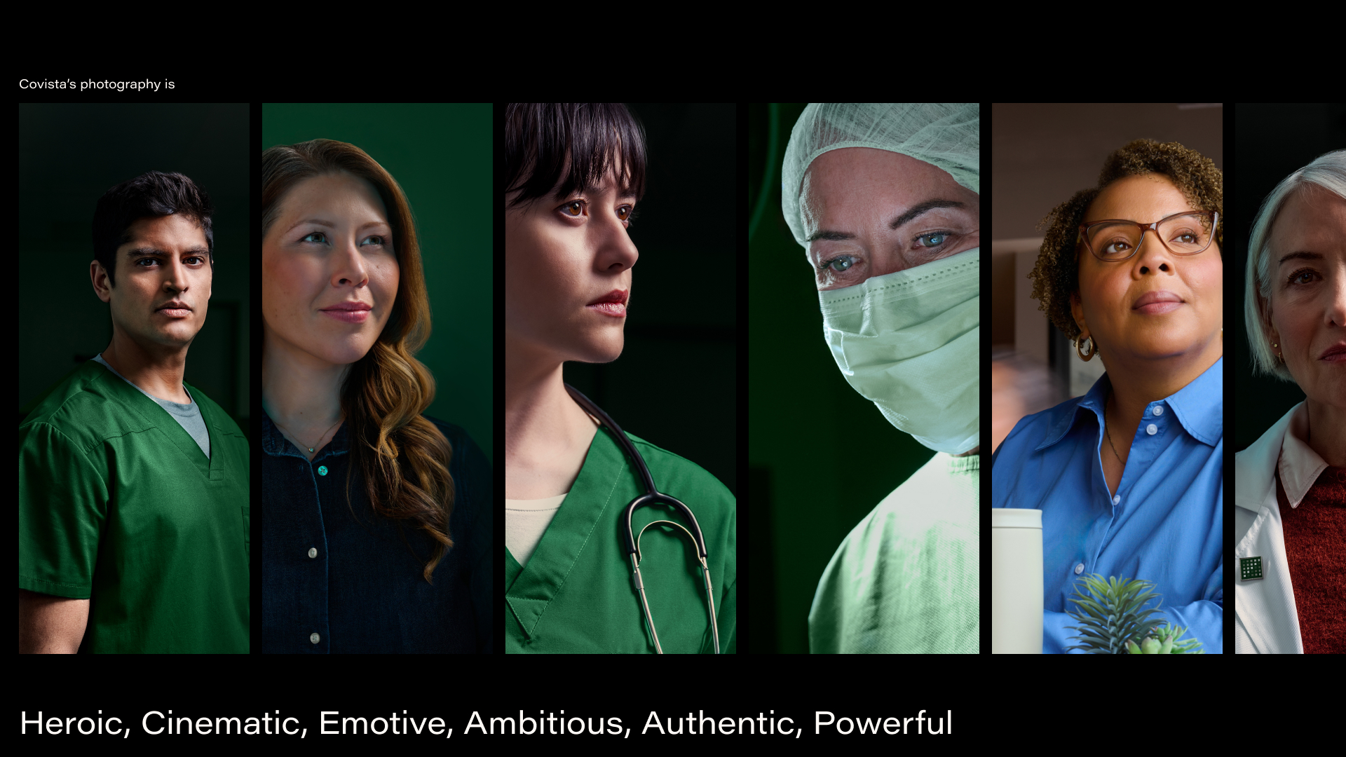 First, the name: A critical part of this assignment was to find a name that would demonstrate collective efforts honed by a single vision. We generated hundreds of names, each with an etymology, which are part of a multi-layer categorical construct. Covista: (pronounced co-vis-tuh) blends two “co”, standing for community, collaboration, and partnership, and “vista”, referencing future and vision. Unpacking the brand idea, “The Talent to Transform Healthcare,” Covista provides access, develops talent at scale, and equips individuals to improve lives and communities. In doing so, it transforms the organization from an owner of institutions to a steward of healthcare impact, clarifying its role for employees, partners, policymakers, and investors alike
